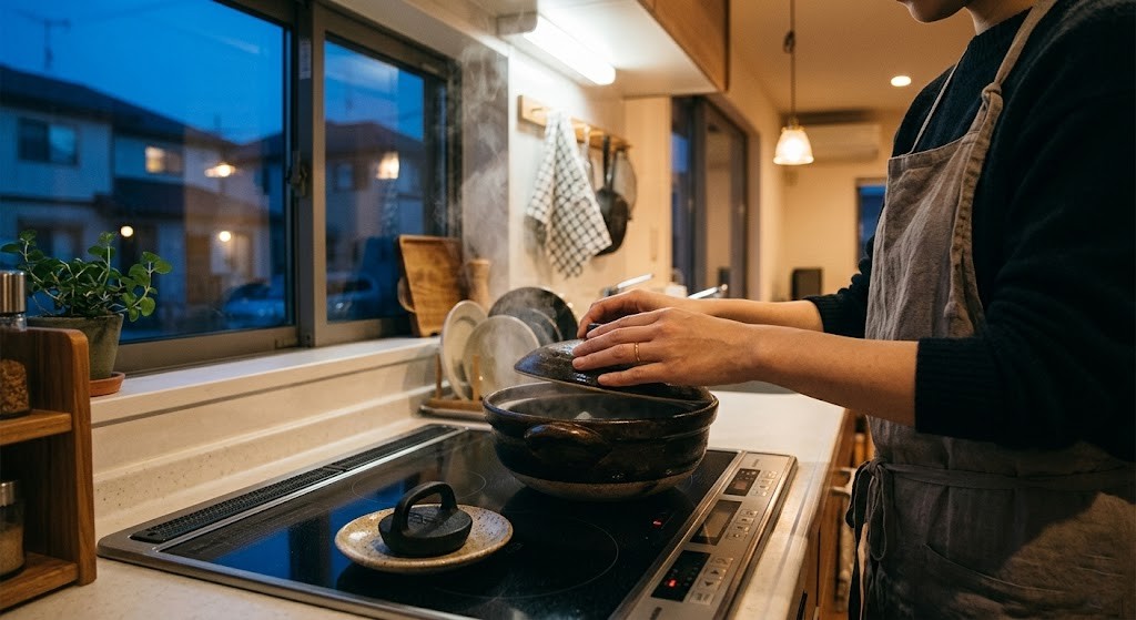 お鍋からは、味噌と根菜の甘い香りが立ち込め、キッチン中を優しく包み込んでいく。 この「煮込む」という時間が、忙しい平日の美咲にとって、心を落ち着かせてくれる大切な儀式だ。