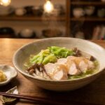 - トマトの角が少し崩れてきたら、鶏ガラスープの素(小さじ1)、醤油(少々)、塩こしょうで味を整えます。