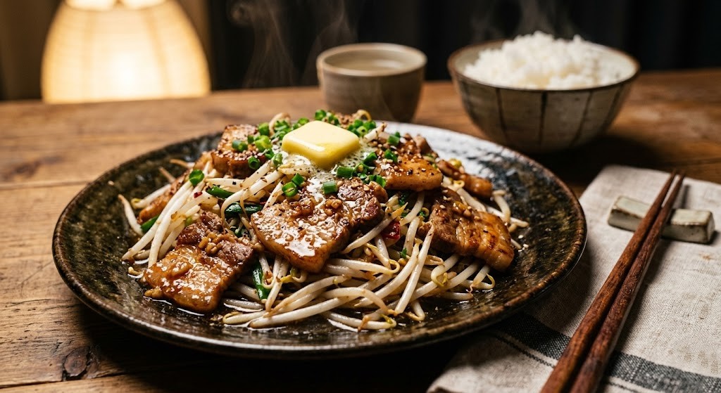 ――夜。 なんとか今日のタスクを終えて帰宅した美咲。もう、手の込んだものを作る気力は残っていない。 「とにかく早く、ガツンと美味しいものが食べたい!」 スーパーで買ってきた特売の豚コマ肉と、もやしをフライパンに放り込む。 味付けは、ニンニク、バター、そしてポン酢。これだけで、絶対に間違いない味が完成する。