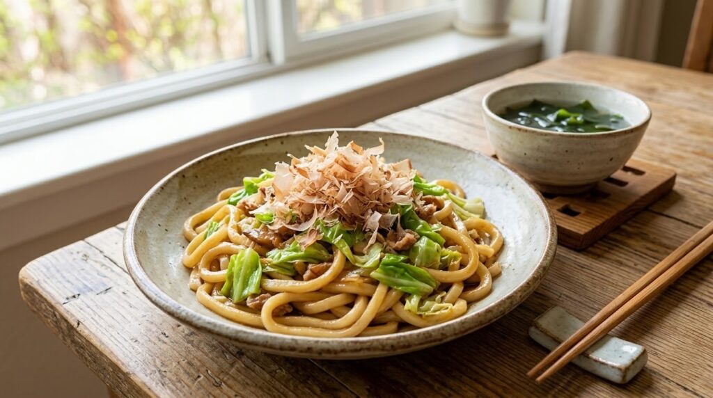 🍳 休日のゆったり献立:春野菜たっぷり、香ばし醤油の焼きうどん