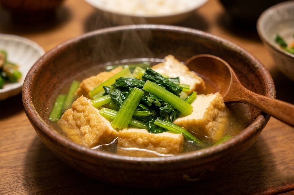 🍳 今夜の献立:包丁いらず!厚揚げと小松菜のサッと煮