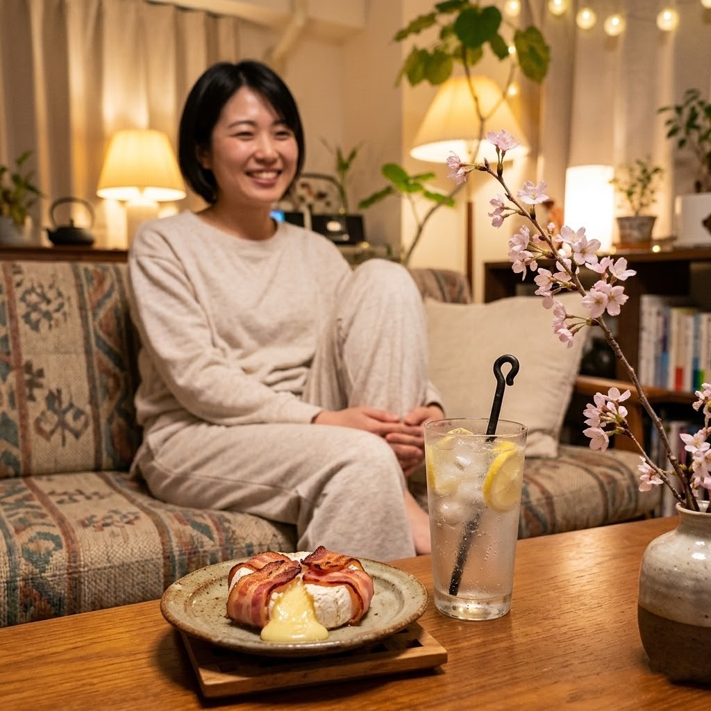 ベーコンにナイフを入れると、中からトロットロのチーズが溢れ出す。 塩気と、はちみつの甘さ。そこへ、アイアンステッキでまろやかになったキリッと冷たいレモンサワーを流し込む。 「……最高すぎる!!」 桜を愛でながらの、カロリー度外視の家飲み。美咲のご機嫌な週末が、華やかに幕を開けた。