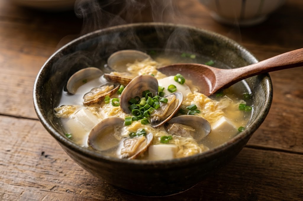 🍳 今夜の献立:疲れた胃腸に。あさりと豆腐のふんわり卵スープ