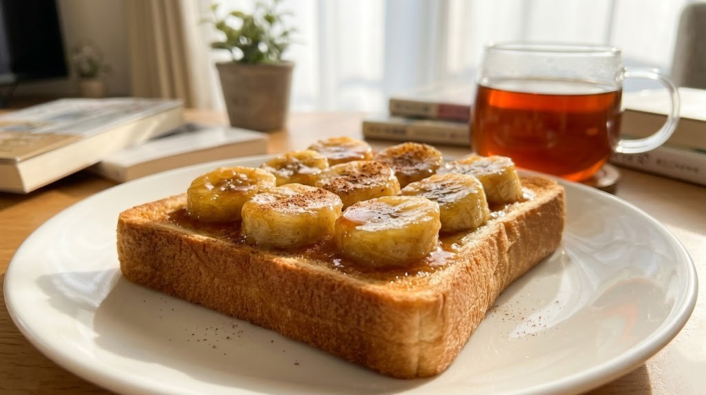 🍳 休日のゆったり献立:トロトロ至福!キャラメリゼバナナトースト