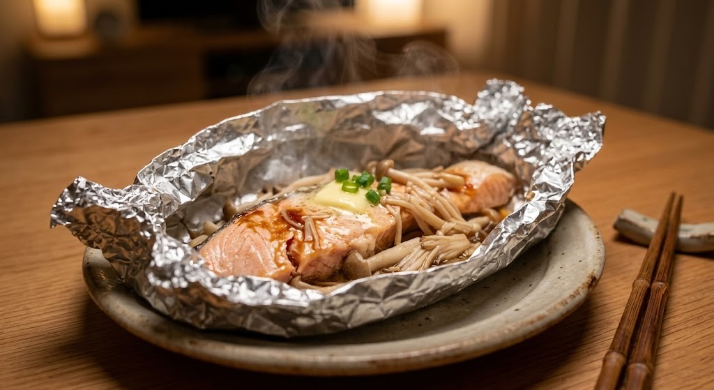 🍳 今夜の献立:洗い物ゼロ!鮭とキノコのバター醤油ホイル焼き