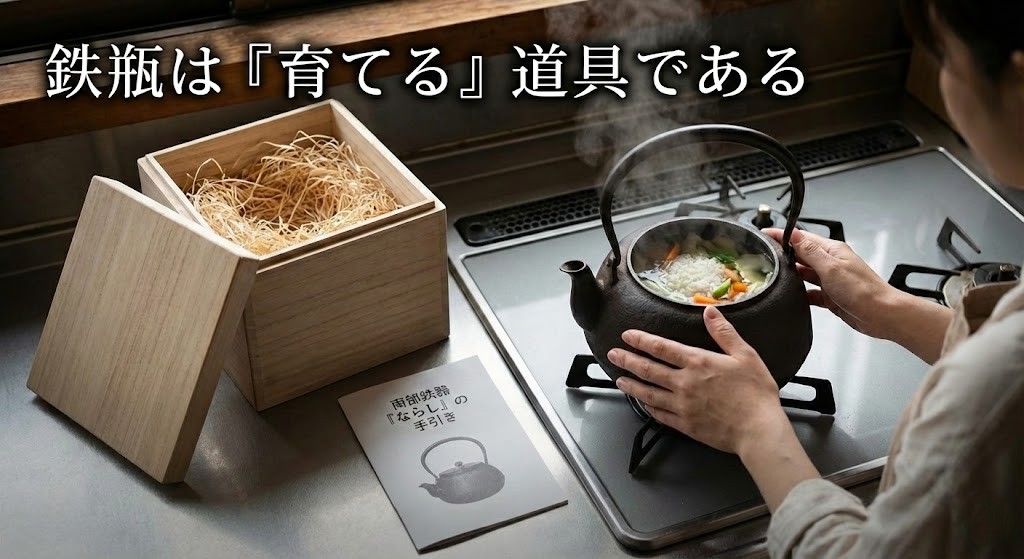 ついに手に入れた憧れの南部鉄器。箱から出してすぐに使い始める前に、最初だけ必要な「ならし(使い初めの準備)」があります。これを行うことで、内部が安定し、錆びにくく、お湯が美味しい「極上の鉄瓶」へと育ち始めます。