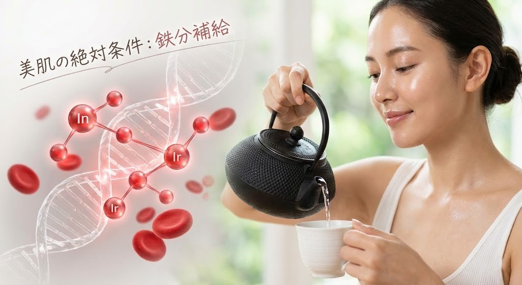 なぜ鉄分が美容に直結するのか。それは、肌のハリを支える「コラーゲン」の合成に、鉄分が不可欠な酵素の働きを助けるパートナー(補酵素)として機能しているからです。鉄分不足の状態でどれほど高価なコラーゲンドリンクを飲んでも、体内でそれを「肌の弾力」に作り替えることはできません。南部鉄器で沸かしたお湯を飲むことは、究極のアンチエイジング・トリートメントなのです。