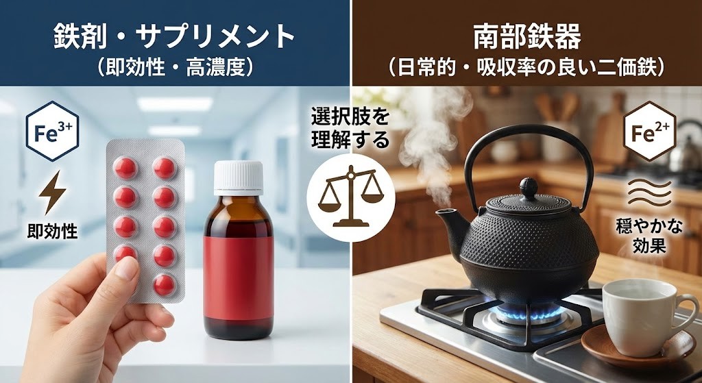 比較 | 鉄剤・サプリメントと南部鉄器、どちらが効率的?驚きのメリット・デメリット比較